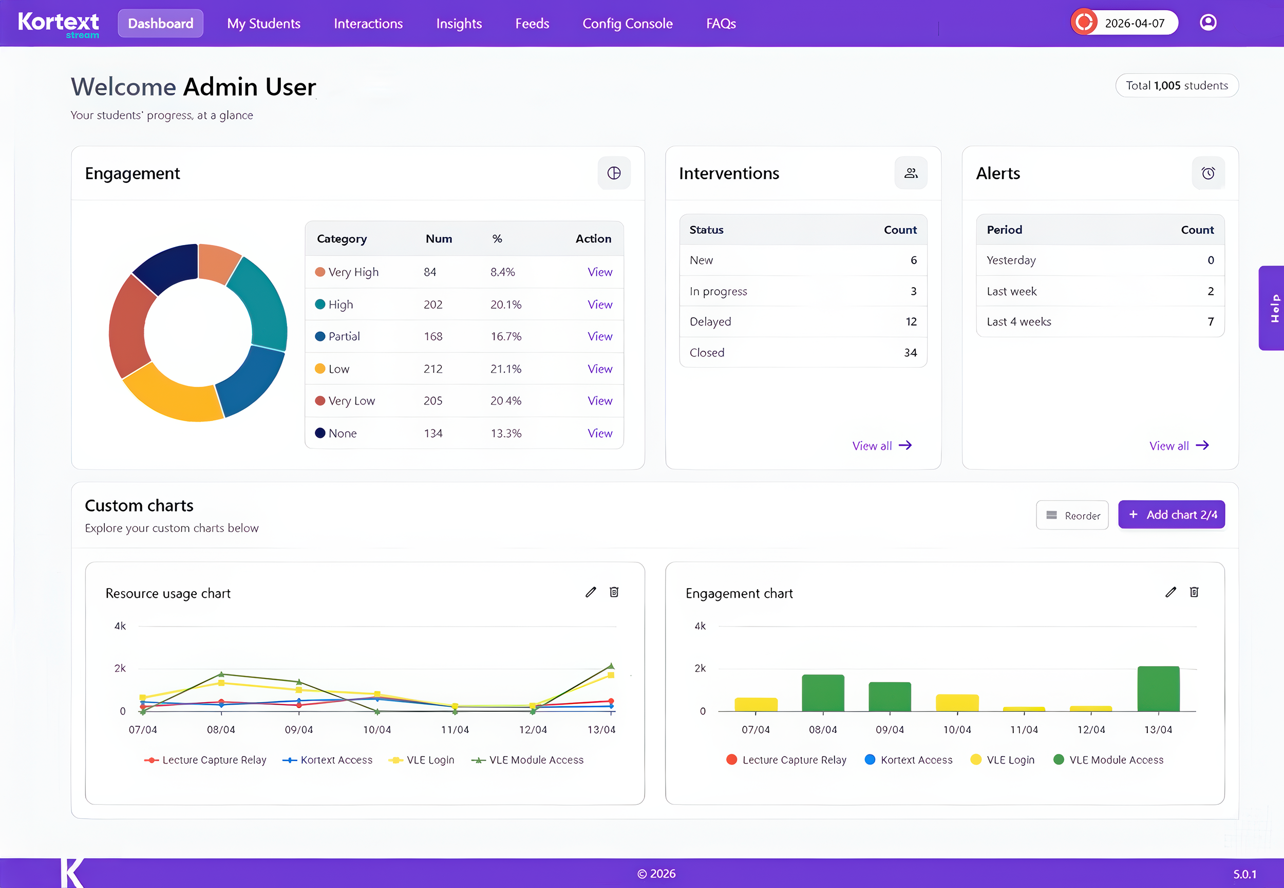 Student and staff facing dashboards make engagement easy to understand and empower students throughout their own learning journey.
