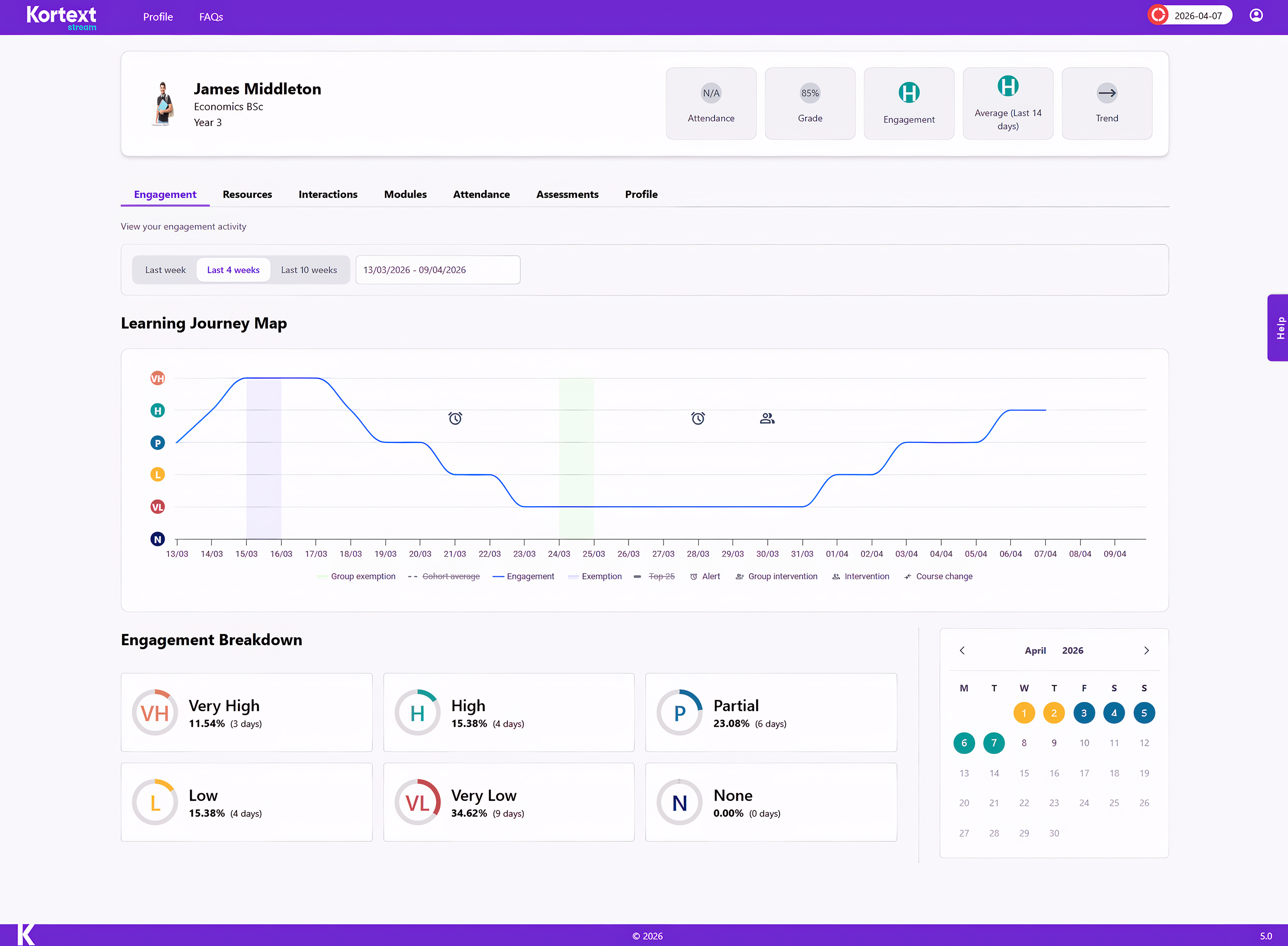 Kortext stream offers a complete picture of student engagement, so you can effortlessly identify at-risk students and provide early interventions and targeted support.
