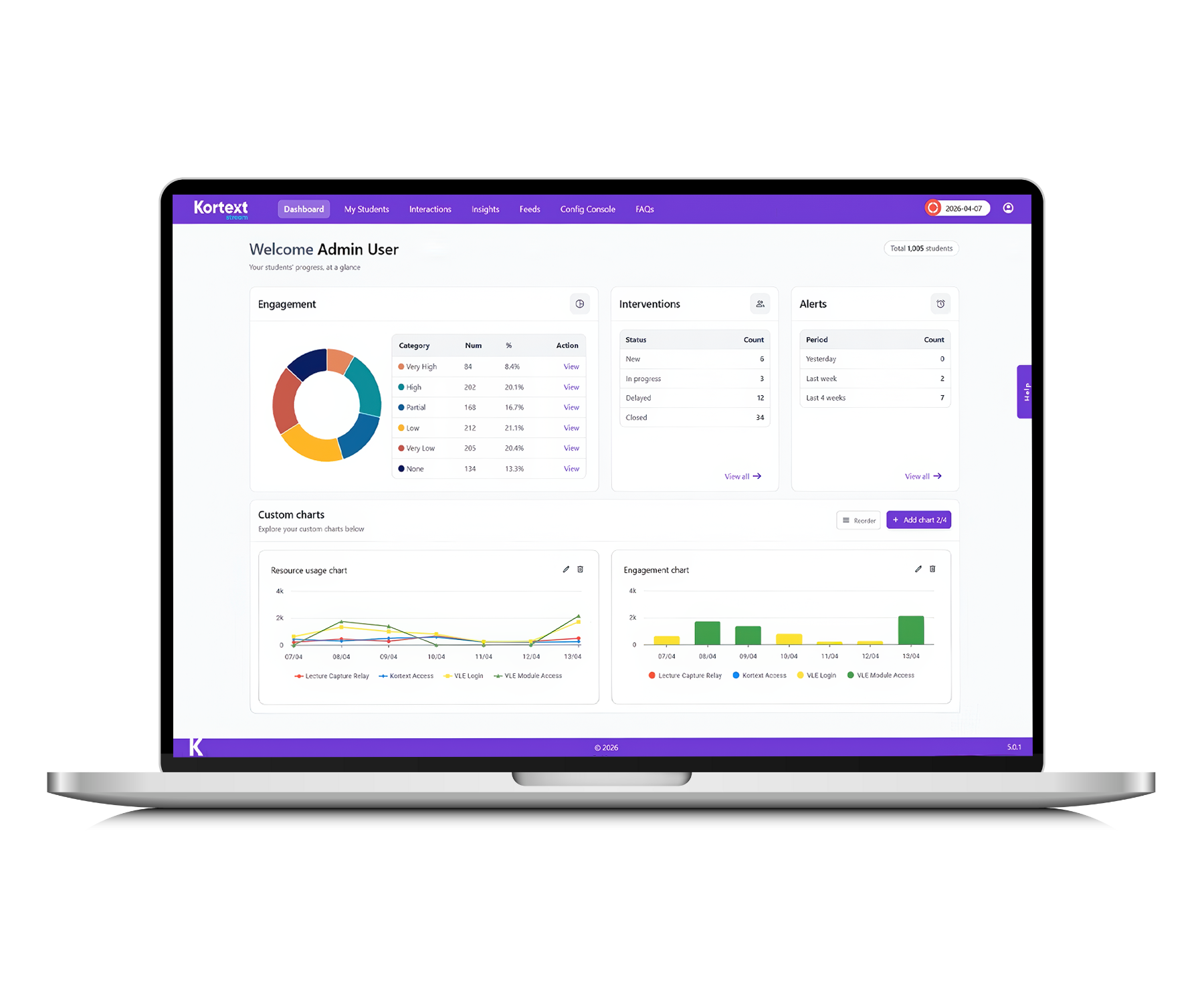 Kortext stream is the leading student engagement analytics platform, providing educators with cutting-edge engagement insight and the tools to deliver proactive and personalised support to the students who need it most, helping them to achieve their full potential at university.